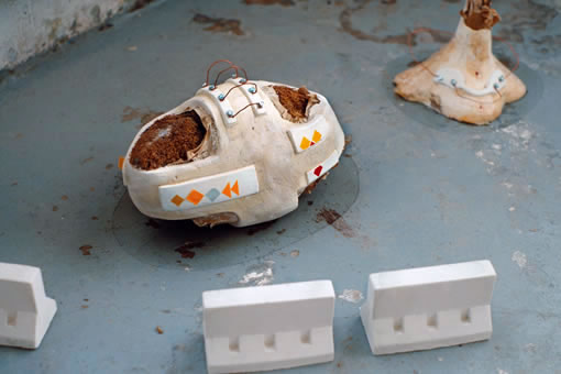 • Heaven over Fire, 2008 plaster, wood, metal, plexiglas, and foam 90" h x 60" x 60"