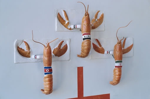 • Axis of Lobster, 2008 lobsters, plaster, metal, and paint 30" h x 30" x 6"