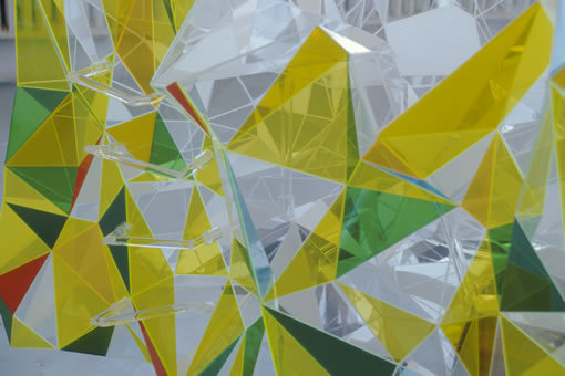 • Flatter Flatterer (detail), 2005 plexiglas, hardwood, and stainless steel 46" h x 46" x 106"