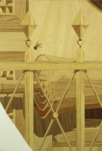• Ego Formation (detail), 2002 plywood and wood veneer 72" h x 48" x 1/8" Collection of Sean and Laura Casey.