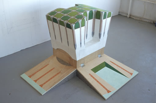 • Foundation Myth, 2005 Plaster, plywood, plastic laminate, cast stone, and nylon flocking 40" h x 56" x 61"