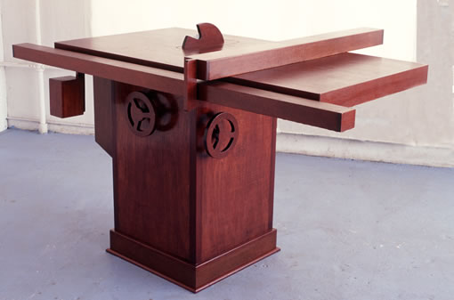 • Family Heirloom (detail), 2002 hardwood, plywood, and saw blade 49" h x 80" x 57"