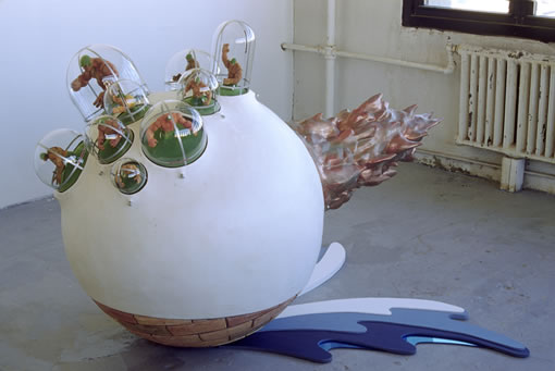 • The Origin of the Things, 2009 plaster, wood, paper, plexiglas, cast stone, nylon flocking, glass, vinyl, decorative finish, and plastic action figures 46" h x 62" x 62"