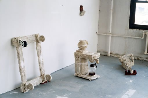 • The Golden Age of Plaster, 2009 plaster, sand, wood, and found objects dimensions variable