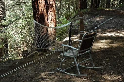 • Game and Match (detail), 2009 wood, string, tape, painted rocks, hardware, and chair dimensions variable Collection of the Djerassi Residency Artists Program.