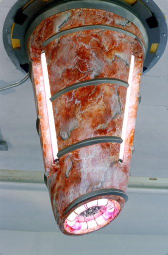 • Final Frontier (detail), 2009 plexiglas, wood, plaster, nylon flocking, cast stone with decorative finish, stainless steel, monofilament, hardware, and light fixtures ceiling piece: 44" h x 32" x 32"; ground piece: 30" h x 75" x 60"