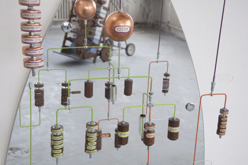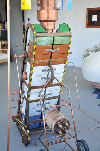 • The Involutes of Nature (detail), 2012 hardwood, copper, steel, plaster, plexiglas, paint, light fixture, hardware and mirror 80"h x 32" x 11"
