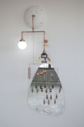 • The Involutes of Nature, 2012 hardwood, copper, steel, plaster, plexiglas, paint, light fixture, hardware and mirror 80"h x 32" x 11"