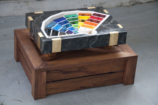 • Geology and Its Discontents (detail), 2011 copper, hardwood, plywood, plaster with decorative finish, plexiglas, nylon flocking, and hardware 91" h x 76" x 76"