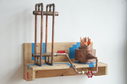 • Combustion Failure Mode, 2012 Copper, wood, paint, and candle 23"h x 24" x 16"